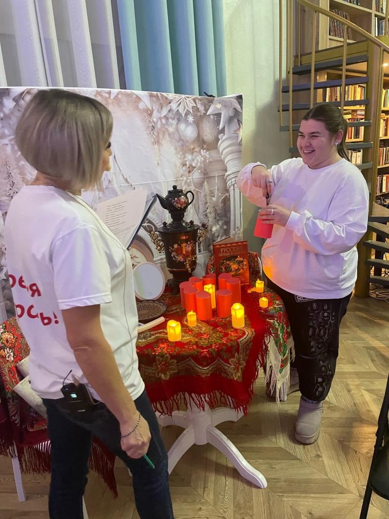 Далее гостей мероприятия познакомили с историей праздника - традициями проведения святочных гуляний, народными обрядами и обычаями. Отгадывали народные загадки, с удовольствием приняли участие в веселом гадании «Что ждёт в будущем году?».